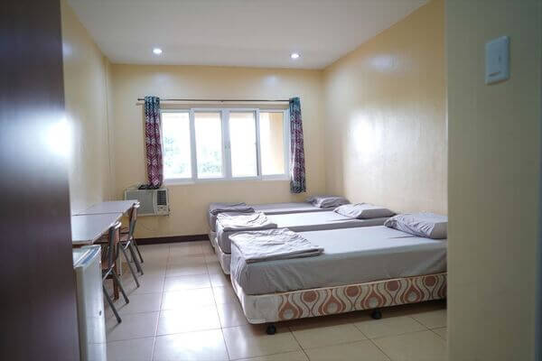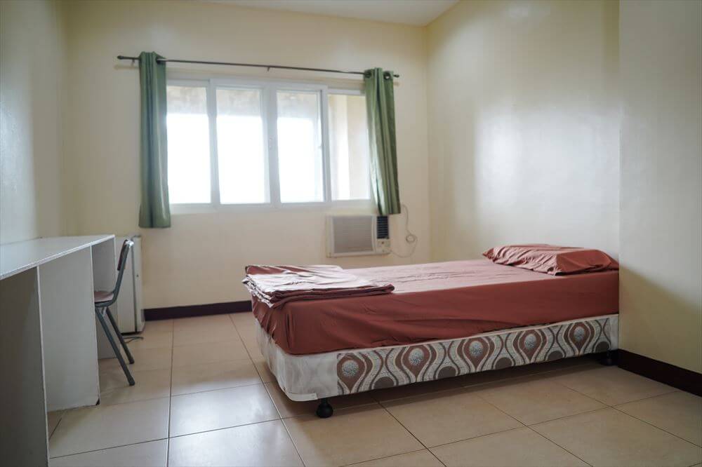 大きな一軒家を校舎にしているため、滞在していると一つの家族になったような感じになります。教室は1階部分で寮は2階部分にあります。お部屋のタイプは1人部屋、2人部屋、3人部屋があり、お部屋の中にはベッド、テーブル、クーラー、クローゼットが完備されており、お部屋ではWi-fiも利用できます。各階にウォーターサーバーと冷蔵庫も置いてあります。食事は1日3食付いており韓国料理、フィリピン料理がメインですが、日本人にも合った味付けです。辛くないので辛い物が苦手な方でも安心して食べられます。