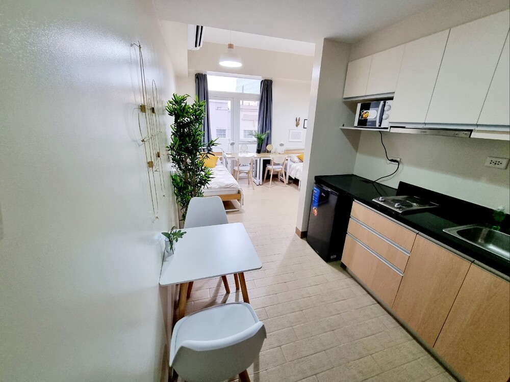 滞在先は、2023年に完成した高級コンドミニアムタイプの寮で、学校から徒歩1分という近さにあり、通学負担が少ないのが大きな魅力です。館内にはプール、ジム、キッズルーム、ラウンジ、マッサージショップなどの共用施設が整っており、レッスン後に運動やリフレッシュができる環境が整っています。部屋タイプは1人部屋と2人部屋が中心で、エアコン、冷蔵庫、ベッド、学習机、シャワー、洗面台、キッチン、レンジなど、生活に必要な設備が一通り完備されており、初めての海外生活でも快適に過ごせます。寮の周辺には大型ショッピングモール「Festive Walk Mall」やカフェ、レストラン、コンビニ、病院などが徒歩圏内にあり、買い物や外食、ちょっとした用事もストレスなくこなせる利便性の高さもポイントです。