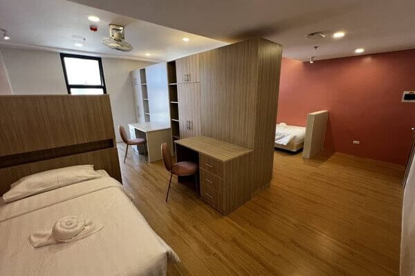 また、滞在先も新築の為かなり綺麗でお1人部屋から4人部屋まで選んでいただける他、ご家族様向けにコンドミニアムのご提供も可能です。